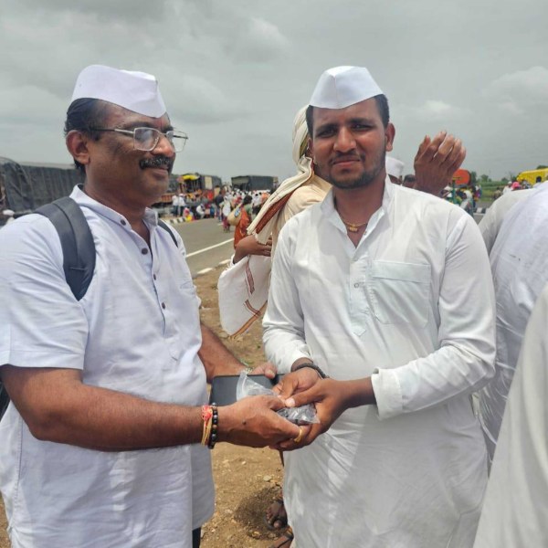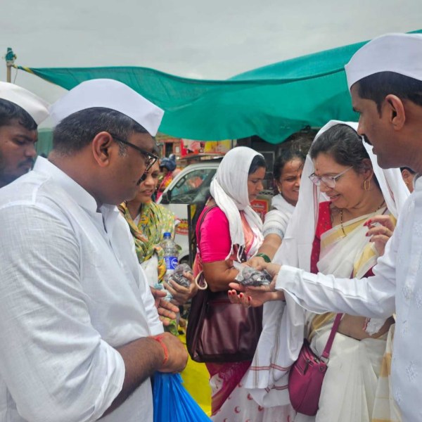 Distributed 80kg khajur and pain relief gel to warkaries at Pandharpur,